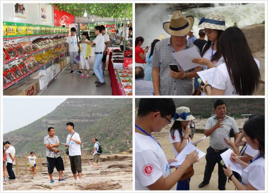 实践队员们就景区的服务、宣传、安全、卫生等方面的问题对当地游客进行了问卷调查。通过调查发现壶口景区的旅游宣传和土特产品销售对增加景区的经济效益起了非常大的作用。其次,景区的配套服务以及安全卫生还需改进。游客们普遍对景区的评价较好,认为壶口瀑布的壮丽景色还是物超所值的。