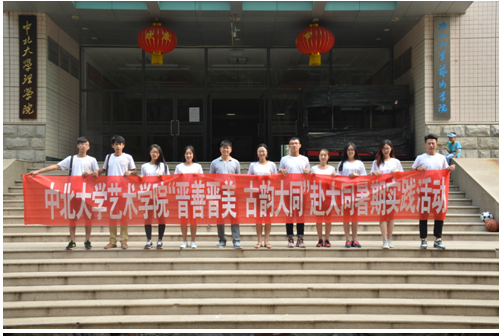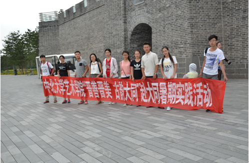 2015年7月9日,艺术学院在院团委书记杜鹃老师的带领下开展了2015年暑期社会实践活动。此次社会实践,艺术学院“艺梦飞扬”实践队将山西大同作为目的地,实地考察民风民俗,弘扬传统文化,助力中国梦。