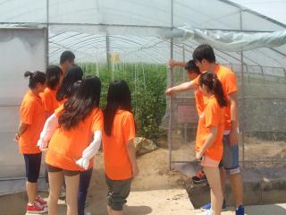 随着实践队员靠近高新开发区,“农业科技试验示范基地”的大牌子也展现在众人的眼前,这是全国的一个基层农技推广补助项目,主要种植的品种有西红柿、西葫芦、茄子、黄瓜等一些蔬菜。再往进走,可以看到一个又一个的合作社连成一片,路两边是望不到头的农田。队员们在威尔仓储五星合作社前停了下来,在说明了来意之后,合作社的工作人员热情的带我们参观了农田基地,同时为队员认真讲解了如何合理运用高新科技去发展农业,并就原来的低端人工养殖与现在的高端科技培养做了对比,让我们深刻的感受到了培养方式的改进对于农业收成及农产品质量的巨大影响。农业科技技术的引进正在慢慢的改变着人们的生活方式,让新农村建设在质上有了崭新的高度,是一次大的飞跃。