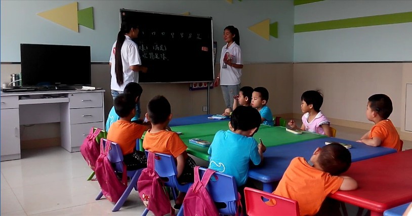 下午3时,队员们和孩子们共同上课,深入了解孩子们的日常生活。课堂旁听之后,两名队员乔钰、杨少琦在老师的帮助下给孩子们授课,热烈的课堂氛围让队员们更深切的感受到任务的重要与神圣。