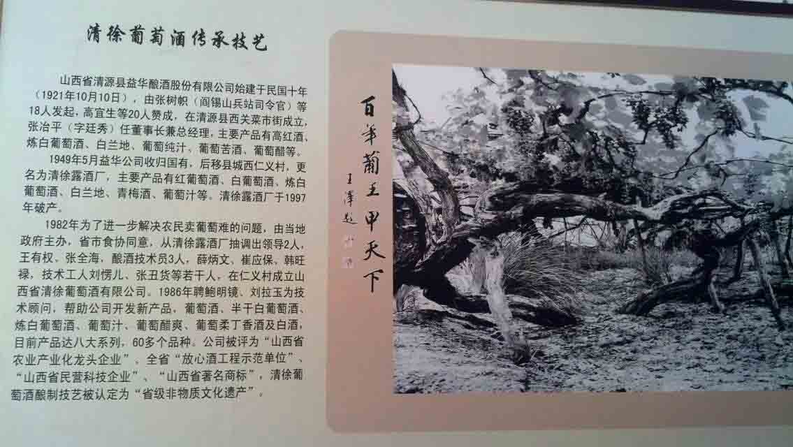 “酒品人品大家品,品酒品人品和谐”,这是进入公司后撞入眼球的第一张条幅,也是引领整个公司风气、树立对外形象的厂训,在王老先生的热情欢迎和耐心引导下,大家参观了公司厂史陈列厅,从公司的起源历史到现在的发展现状,从品种的单一性到现在的产品多样化,它不仅记录了企业的发展,更侧面反映中国地方企业历经时代的变化,正一步步走向成熟——从以前落后的依靠农耕工具的小规模生产,到现在基本实现机械化酿造。在1949年首届中国人民政治协商会议上,马裕葡萄酒更是当之无愧成为国会用酒。