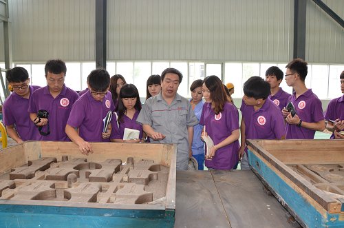 在参观各车间过程中,王总详细地向我们介绍了各车间的工作流程,特别是在参观分类明确的铸钢工厂和整洁条理的模具库时王总多次提及“5s”管理即整理,整顿,清扫,清洁,素养。在交流中王总表示了对我们大学生中高素质的管理人才的渴求。在展示从德国引进的国际先进水平生产线时,王总提及清慧目前较为风险的战略:先引进生产线,再接订单。足见清慧“抓生产,促发展”的魄力。王总也提到清慧的头疼问题:喷漆,设配需要升级,颜色、附着力等需要格外注意。