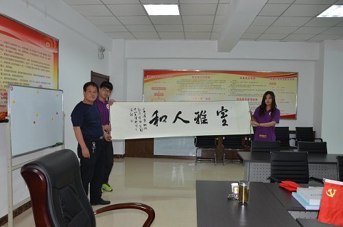 队长代表“慧材”实践队对清慧公司表示感谢并送上卷轴“室雅人和”和中北大学相关资料,总经理致以衷心感谢后开始此次讲话,高总简要介绍了清慧近期的重大战略部署,包括装配车间的调试以及远程智能控制中心等,高总强调,不要搞虚拟东西,在工作的深度和广度上都要扎扎实实。就清慧发展而言,高总谈到“没有文化的企业是愚蠢的”,一个企业必须要有深入人心的文化来铸造优秀的团队,清慧的整个现状,各方面都超出预想,高总表示,人才是第一的,清慧的文化、发展、素质都需要好的人才来创造。提到大学生的学习与就业,高总认为在各方面的影响下,现在的大学生都太脆弱,更要从心理上面对现实的就业形势,高总指出学习要厚积薄发、学到肚子里,是金子总会发光。