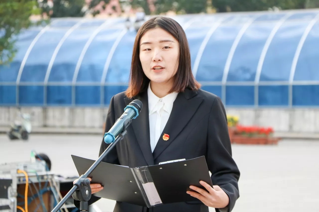 随后,我校优秀学生代表范晨曦同学进行发言:作为中北学子,我们要牢记先烈们的奉献牺牲,追寻他们的崇高理想,将老一辈中北人凝练打造的“太行精神”发扬光大,把“致知于行”的校训融入自己的行动中,发奋图强,再铸辉煌。