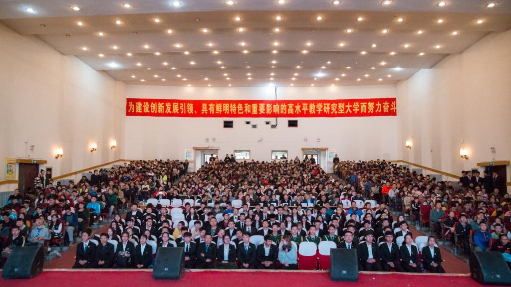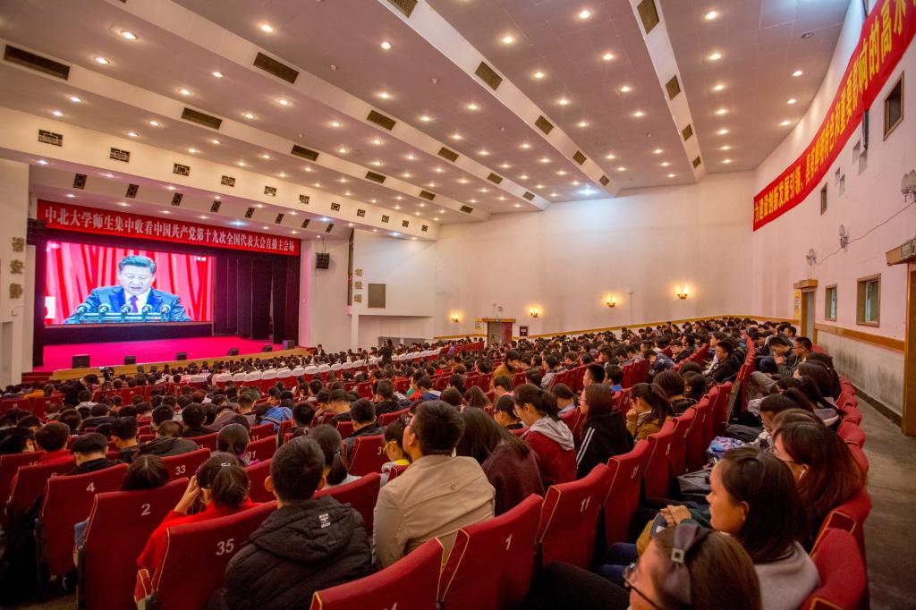 10月18日上午9时,举世瞩目的中国共产党第十九次全国代表大会在北京召开,这是在全面建成小康社会决胜阶段、中国特色社会主义发展关键时期召开的一次十分重要的大会。为及时学习领会党的十九大会议精神,掀起我校深入学习宣传贯彻党的十九大精神热潮,全体校领导、党委中心组成员、全校学生工作人员、全体专兼职团干与校院两级学生骨干和青年学生代表800余人一起在科艺苑集中收看了党的十九大开幕会直播,共同聆听了习近平总书记作的报告。