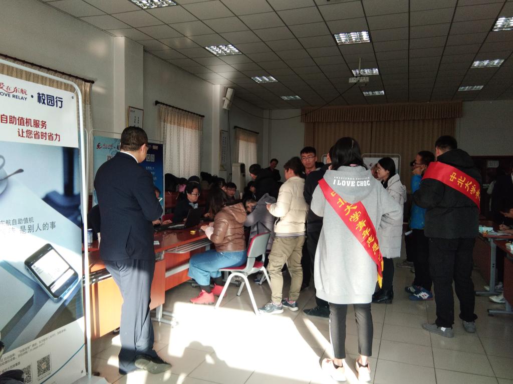 11月30日,校团委携手中国东方航空山西分公司市场营销部在我校科艺苑学术报告厅举行“爱在东航•校园行”活动,为师生提供校园专属特惠机票,方便师生出行,共有500余名师生参与购票活动。