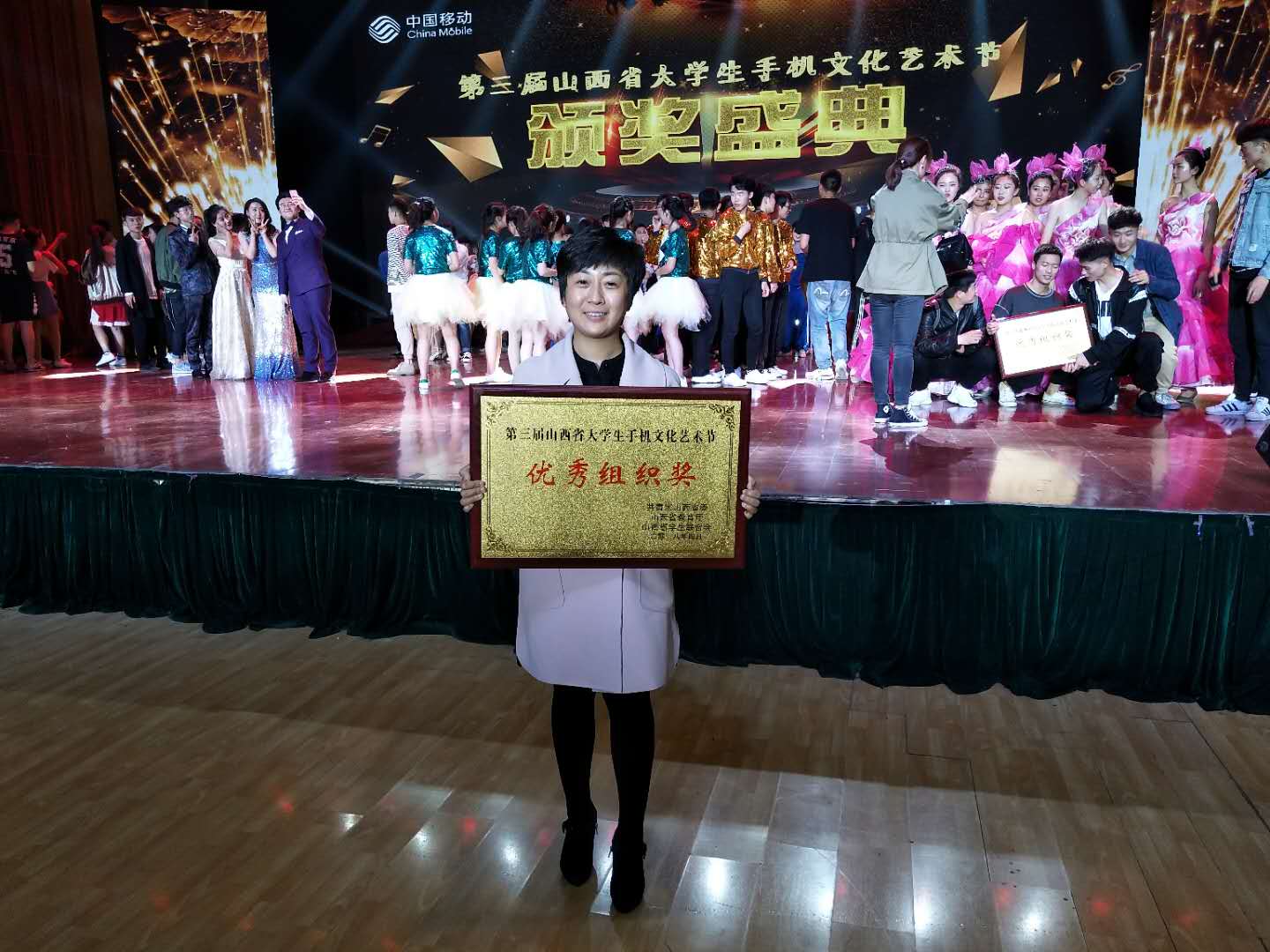 4月13日晚7时,由共青团山西省委、山西省教育厅、山西省学生联合会、中国移动通信集团山西有限公司主办的第三届山西省大学生新媒体文化艺术节颁奖典礼在山西工商学院学生活动中心举行。省教育厅体卫艺教处处长胡雅林、团省委学校部部长牛冀同、山西省学联驻会主席许柯等出席颁奖盛典,并为获奖集体和个人颁奖,校团委副书记刘玉巍及获奖师生代表参加了活动并现场获颁优秀组织奖、最佳指导教师奖、最佳人气奖、最佳导演奖等多个奖项,我校学生管伟名代表中北大学在颁奖典礼上参演唱歌节目,展示青春风采。