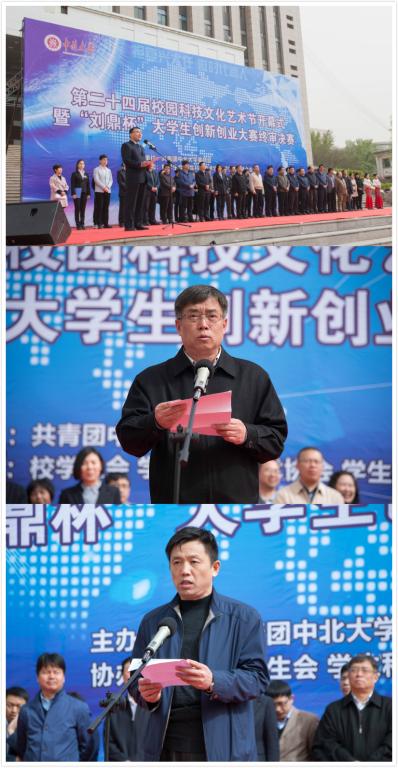 校党委副书记薛智教授做重要讲话。他充分肯定了今年校园科技文化艺术节的创新与改革,主题定位符合新时代新要求,三个版块的活动少而精、层次分明、内涵丰富,既能通过理想信念教育“凝心铸魂”,又能助力实现创新创业梦想“实践育人”,也能依托文化艺术滋养平台“文化育人”。他认为以“刘鼎杯”命名创新创业大赛就是要以我校独具特色的军工文化底蕴激励更多的中北学子投身科技创新和创业。七年来,“刘鼎杯”已然成为我校学生创新创业最重要的品牌赛事,受到师生广泛关注和热情参与。薛书记特别赞扬了一年一度的“社团巡礼展”在给所有学生社团搭建文化交流和展示的平台,为同学们了解社团、走进社团、发展社团、引领社团提供对接方面发挥的重要作用,肯定了学生社团在历届科技文化艺术节和校园文化建设中发挥的重要作用。薛书记希望同学们珍惜韶华,莫负青春。珍惜这个舞台,不当观众,领衔主演,以饱满的热情投身到各项活动中,润心灵、炼意志、树形象、展风采;希望同学们勇于创新,引领时代。融入这个氛围,刻苦自励、担当作为,以无限的激情投身创新创业,展才华、现特长、练素质、积力量;希望同学们传承文化,追求高雅。弘扬这个传统,自觉熏陶、陶冶情操,以深厚的感情投身于各项品牌活动,尊德性、道问学、提修养、谱华章。