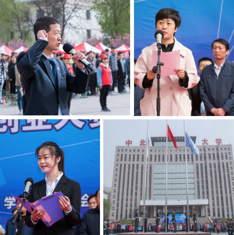 在庄严的升国旗、奏唱国歌仪式后,由校团委副书记魏翀带领所有团员青年重温入团誓词,唤起广大团员青年的使命感和责任心。开幕式上,校团委副书记刘玉巍对本届科技文化艺术节做了详细安排,包括组织机构、主题、“一条主线、两个目标、三个版块”的设计理念以及由“重数量”向“重品牌”转变的创新点,要求各级团学组织要利用好团学新媒体优势做好宣传引导。校学生会主席赵晨成代表青年学生表达了发挥好学生组织在校园文化建设中的生力军作用的坚定信心和决心。“刘鼎杯”大学生创业大赛评审组组长、经济与管理学院院长赵公民教授对2018年“刘鼎杯”创业计划竞赛情况做介绍及终审决赛安排,并表示帮助学生团队培育和改良作品,积极备战将由我校承办的山西省2018年“创青春”大学生创业大赛。