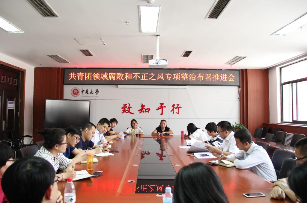 5月16日下午,校团委在主楼320会议室召开了共青团领域腐败和不正之风专项整治布署推进会。全体专职团干参加会议,会议由校团委书记李俊华主持。