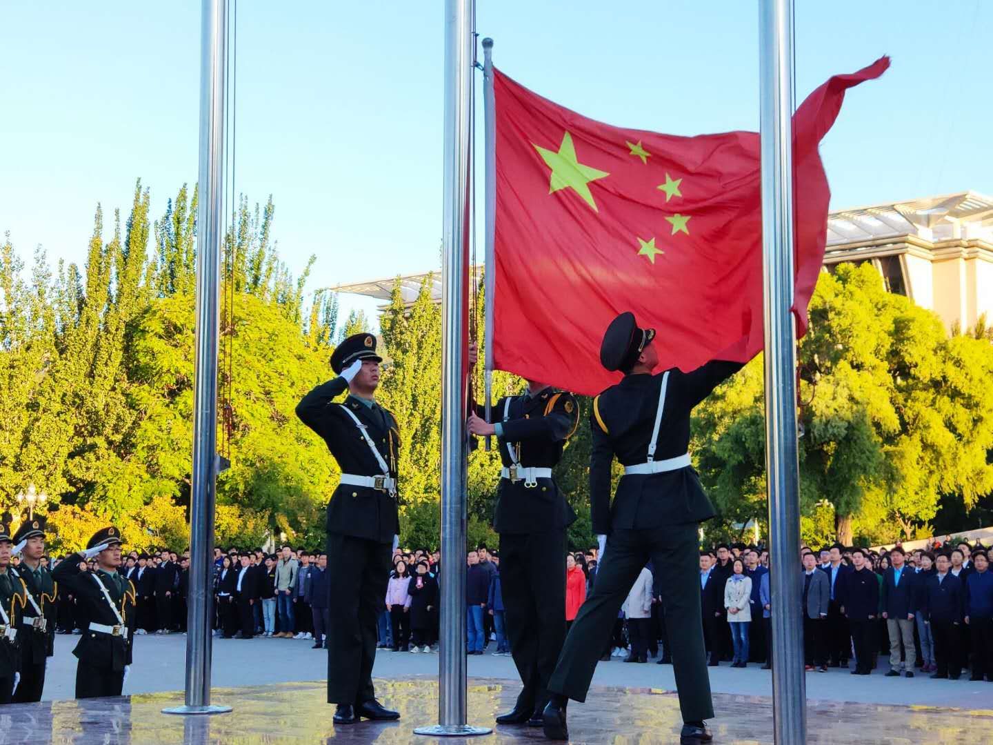 9月30日7:00,在第五个国家烈士公祭日到来之际,为追思英雄、致敬先烈,缅怀历史、弘扬精神,我校在行知广场举行了隆重的公祭活动暨大型升国旗仪式。全体在校校领导、全校各部门、各学院负责人、在校教师代表、专职团干、辅导员、校院两级学生骨干和2018级新生近万人共同参加了公祭仪式,仪式由校党委副书记薛智教授主持。