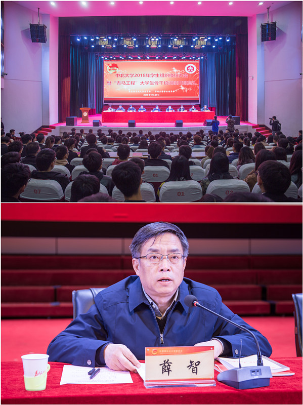 校党委副书记薛智在会上做了重要讲话,他充分肯定了上一任全体学生干部恪尽职守、服务同学、服务全校、勤于学习、勇于实践、敢于创新的积极示范作用,强调广大团学干部要珍惜机遇、把握机会、不断提升自己的综合素质,更要拼搏进取、施才展能、努力展示团学组织的良好形象。对广大团学干部提出六点希望和要求,要求广大团学干部带头在坚定理想信念上下功夫、争做担当民族复兴大任的时代新人;带头在厚植爱国主义情怀上下功夫,立志听党话、跟党走、扎根人民、奉献国家;带头在加强品德修养上下功夫,为整个人生打下向好向上的价值基础;带头在增长见识上下功夫,成为具有人文素养、国防底蕴、科学精神、创新能力与宽广视野的中北才俊;带头在培养奋斗精神上下功夫,用奋斗铸就闪光青春;带头在增强综合素质上下功夫,实现综合能力、创新思维、文明素养全面发展。他指出,“青年马克思主义者培养工程”是学生骨干培养的重要平台、是学生骨干集中的一次理论武装、是团学组织生动的教育实践活动,他希望所有团学干部都能认真学习、深入思考、提升学习实效、为今后推动工作奠定良好的基础。