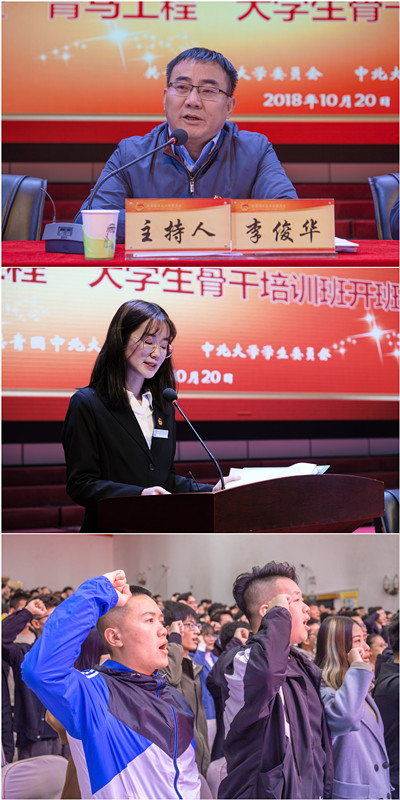 10月20日上午8:00,中北大学2018年学生组织换任大会暨青年马克思主义者培养工程大学生骨干培训班开班典礼在科艺苑隆重举行,校党委副书记薛智、校党委常委、宣传部部长薛实军、学生工作部部长尹建平、教务处处长吴淑琴、招生与就业工作处处长李博、后勤管理处处长杨正民等党政领导应邀出席,全校专职团干以及850余名校院两级学生干部学员参加了大会。会议由校团委书记李俊华主持。