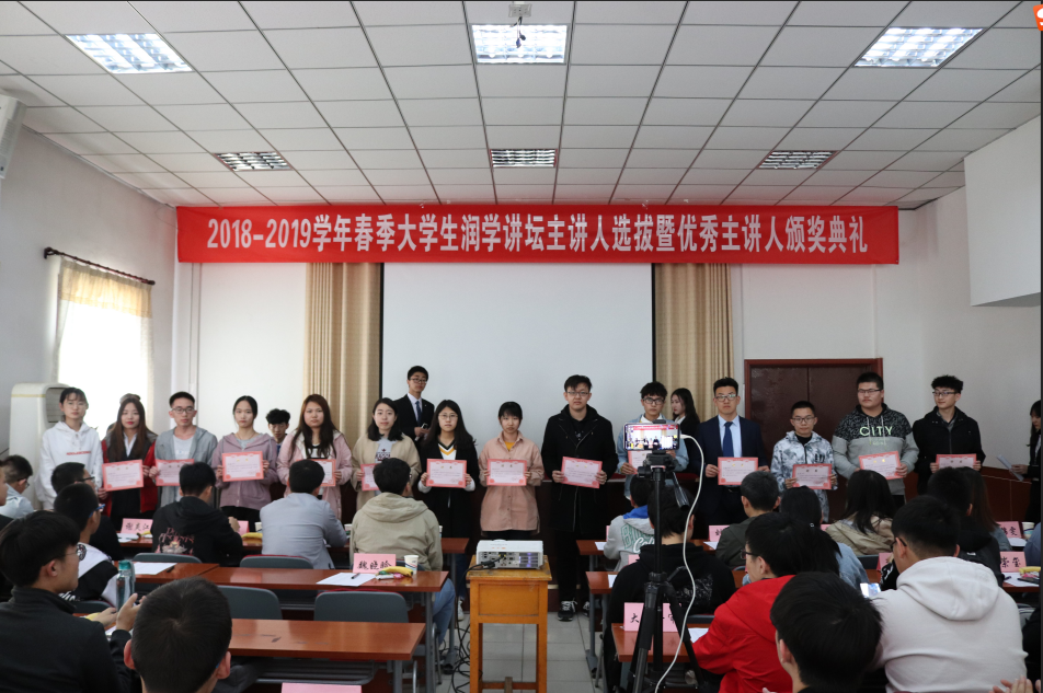 活动伊始,校科协主席团为上届优秀主讲人颁发了证书,肯定了他们在润学讲坛中优异表现。紧接着主讲人的选拔在一片和谐热烈的氛围中展开,各位主讲人张弛有度、充分展示自己、清晰生动的表达了讲题。每一位主讲人仿佛一本本趣味生动的书,他们不但有知识,还有故事,引得现场的观众评委们都连声喝彩。