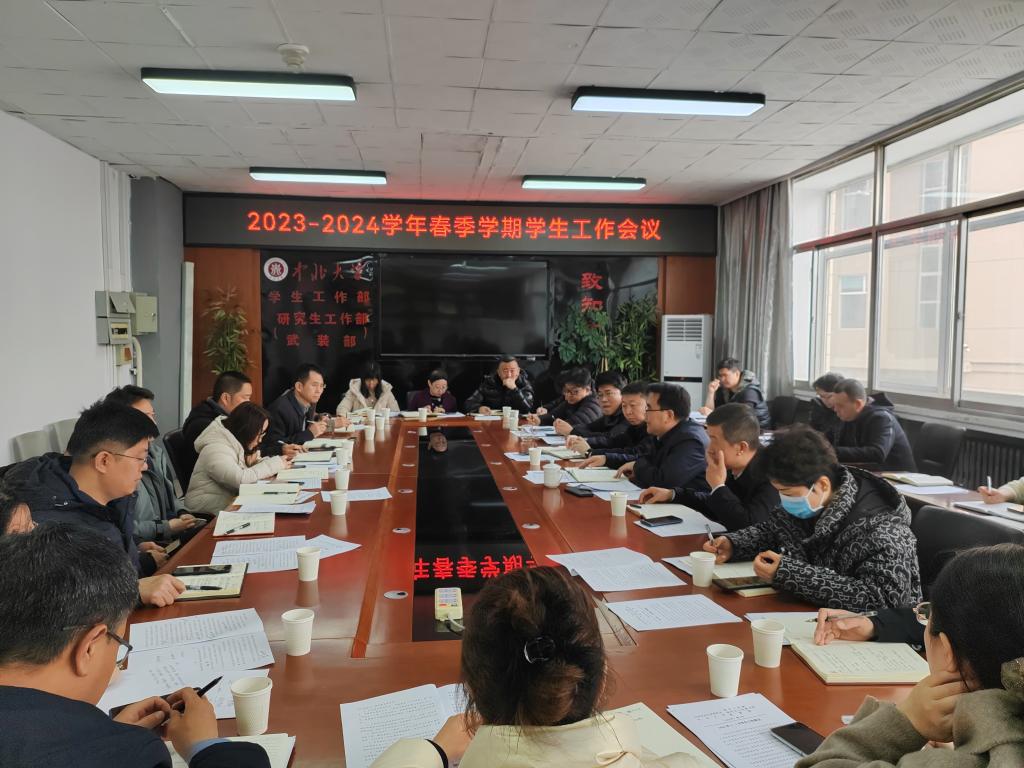 学生工作部部长顾宁传达了全省学校春季开学安全工作视频调度会议精神,部署了学生思想状况调研、心理健康普测、安全教育和安全隐患排查等具体工作。校团委书记魏翀,学生工作部副部长崔亚分别解读了2、3月份共青团工作要点和学生工作要点。