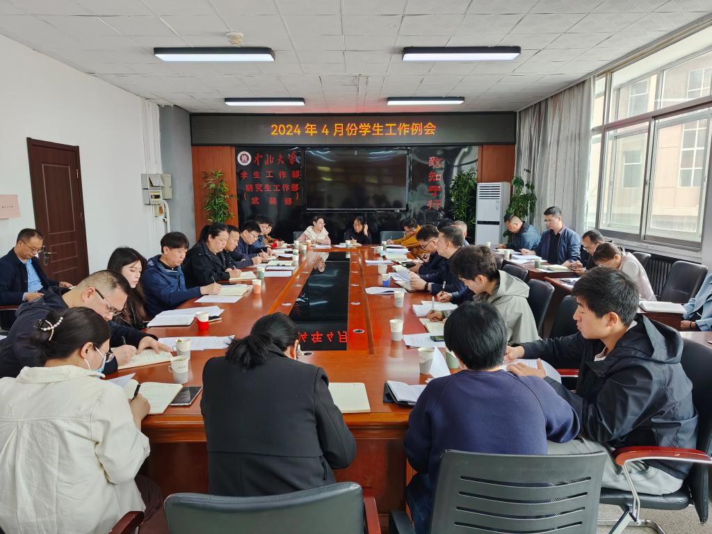 4月1日上午,学校召开4月份学生工作例会,重点围绕2024年4月学生工作要点、共青团工作要点,对下一阶段学团工作进行安排部署。副校长尹建平出席会议,各学院党委副书记、学工部、团委相关负责同志参加会议。