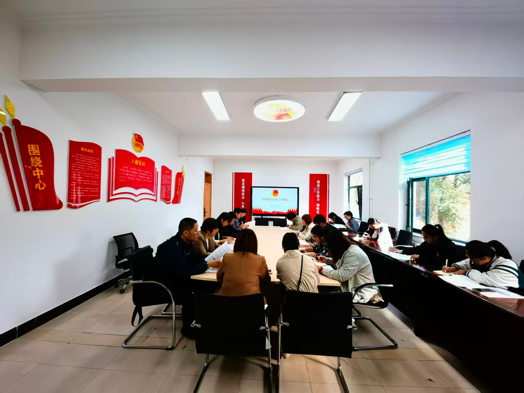 9月29日上午,校团委在行知楼204会议室召开10月份共青团工作部署会,对10月份共青团工作进行部署安排。校团委副书记王彩萍主持会议,全体专职团干参加会议。