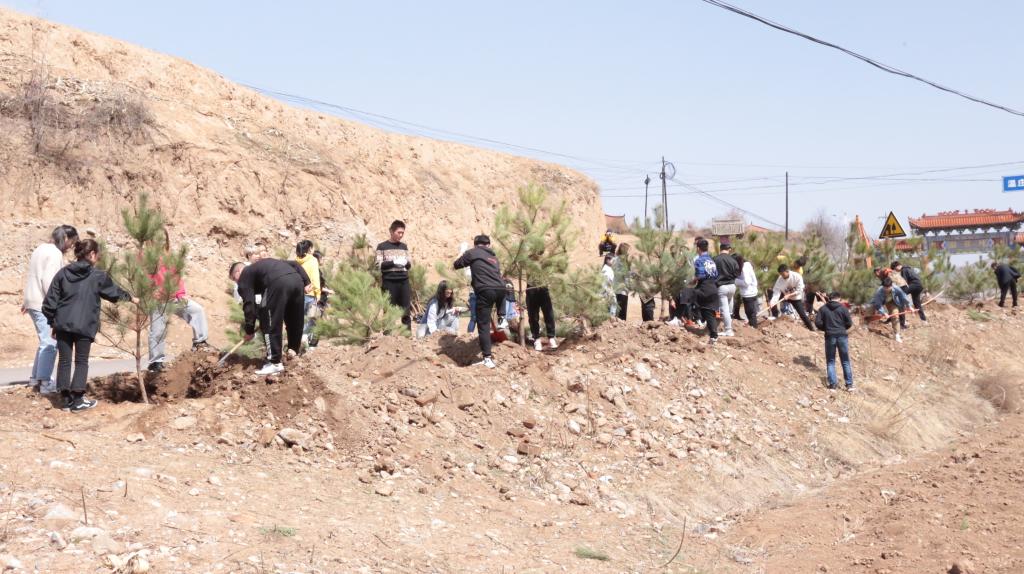参观过后,师生在旧址共同种下一颗颗希望的树苗,在植树现场,大家互相配合,有的挥锹铲土、有的扶树填土、有的培土浇水,忙得不亦乐乎。100棵松树苗在旧址“安家落户”,为旧址添上了一片新绿。看到微风中轻轻摇曳的枝干,犹如新生的中北学子,生生不息,将太行精神传承延续。