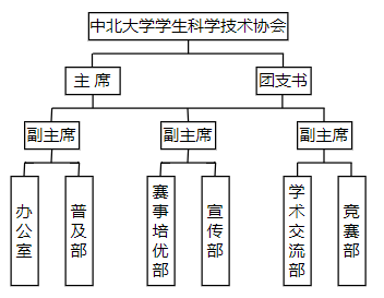 学生科协由办公室、竞赛部、学术交流部、普及部、赛事培优部、宣传部等6个部门组成,共计一百余人。组织架构图如下: